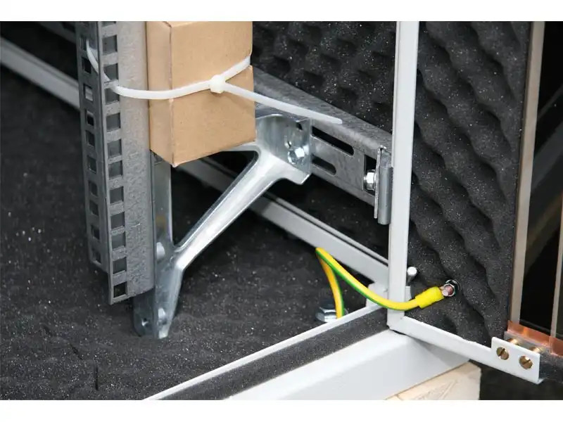 L’intérieur de l’armoire est équipé d’une mousse acoustique PUR ignifuge gaufrée, spécialement développée pour absorber les ondes sonores des serveurs. Sa structure tridimensionnelle assure une absorption optimale sur une large plage de fréquences.