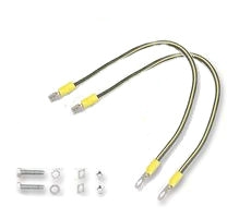 - >Kit de mise à la terre. Permet d'assurer la continuité de la mise à la terre entre la structure de la baie, ses panneaux latéraux ou/et les portes. 1 câble jaune/vert 2,52 de 300 mm et visserie. Il est recommandé d'utiliser 2 kits terre par baie.